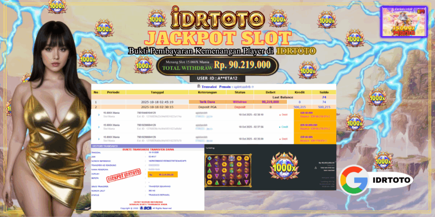 IDRTOTO BAYAR LUNAS JACKPOT PERMAINAN SLOT 15.000X Mania Rp.90.219.000 – LUNAS