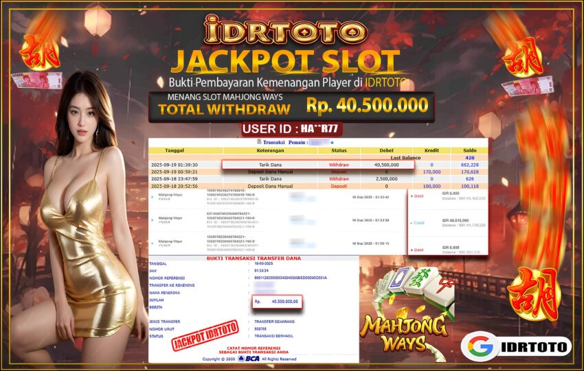 IDRTOTO JACKPOT PERMAINAN SLOT MAHJONG WAYS 1 Rp.40.500.000- LUNAS