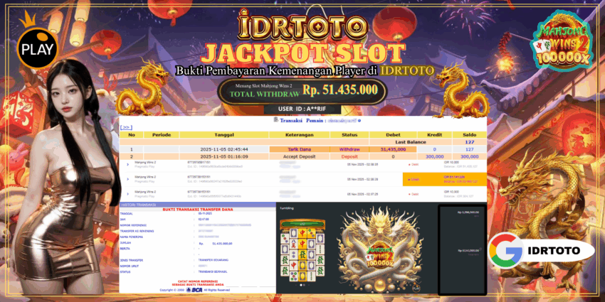 IDRTOTO BAYAR LUNAS JACKPOT PERMAINAN SLOT MAHJONG WINS 2 Rp.51.435.000 – LUNAS