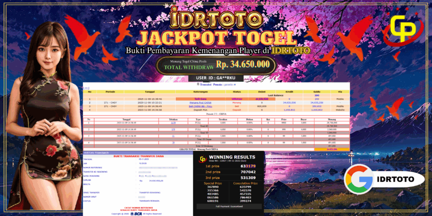 IDRTOTO BAYAR LUNAS JACKPOT PERMAINAN TOGEL CHINA POOLS Rp.34.650.000 – LUNAS