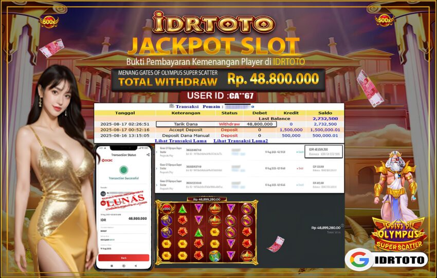 IDRTOTO BAYAR LUNAS SLOT GATES OF OLYMPUS SUPER SCATTER Rp.48.800.,000 – LUNAS