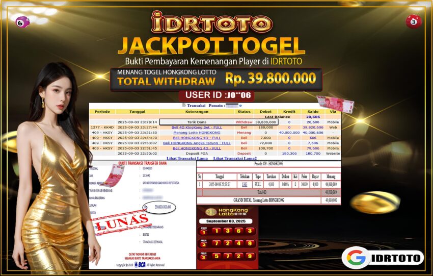IDRTOTO BAYAR LUNAS TOGEL HONGKONG LOTTO Rp.39.800.000 – LUNAS
