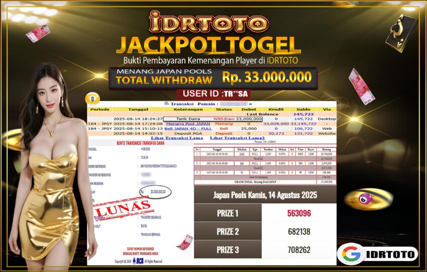 IDRTOTO BAYAR LUNAS TOGEL JAPAN POOLS Rp.33.000.,000 – LUNAS